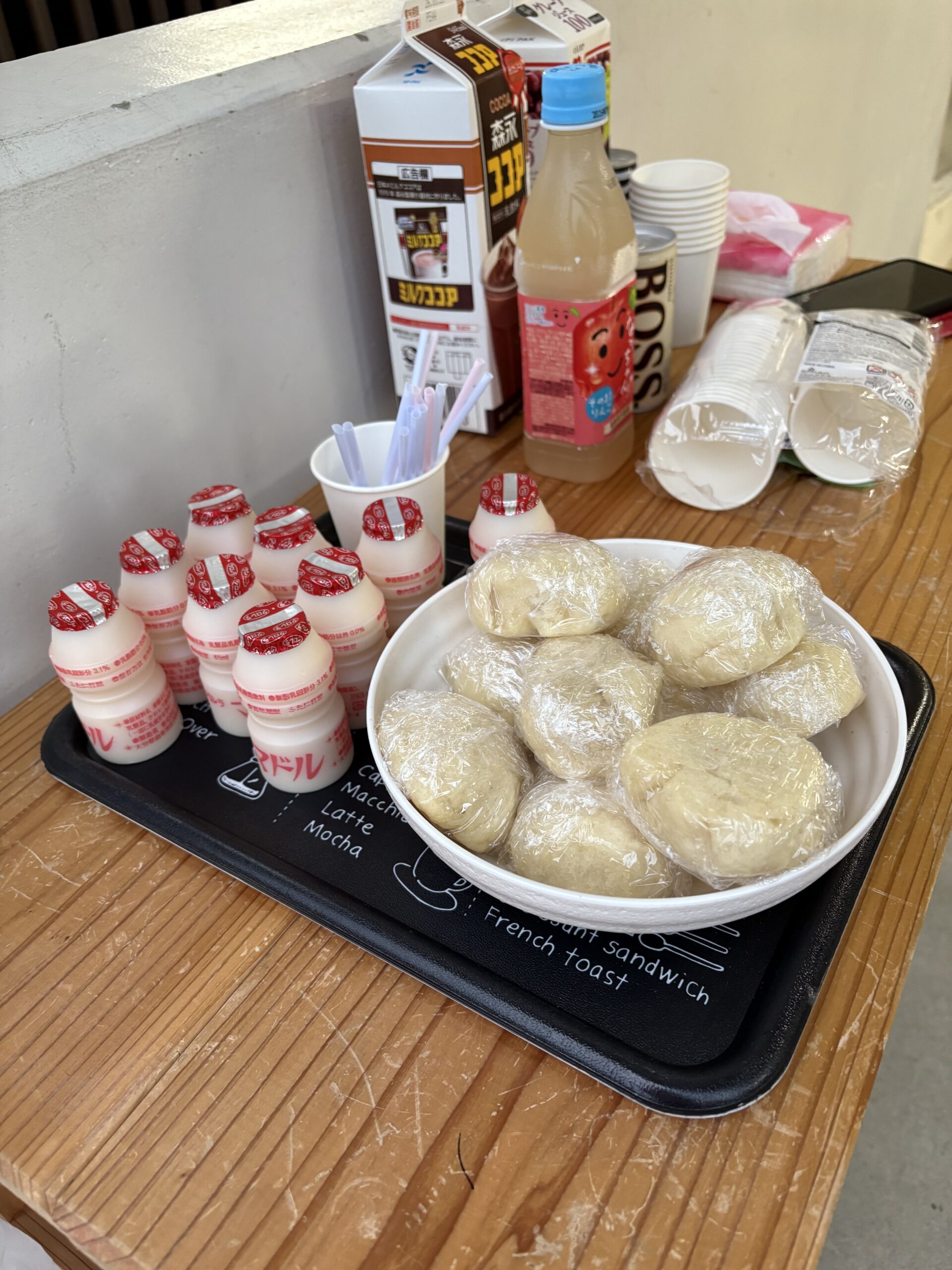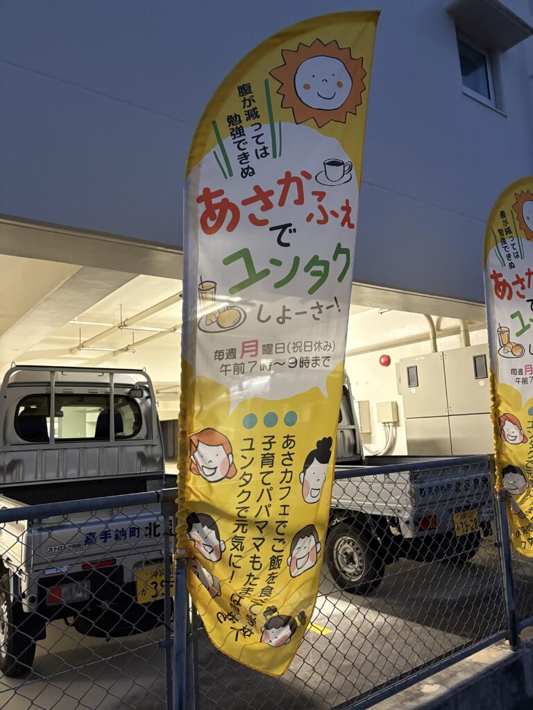 嘉手納町北区と嘉手納社協が協力して、週初めの月曜日、子どもたちが学校に行きやすいようにあさカフェを実施しています。ドリンクを毎週朝の7時〜8時の学校登校前に配っていて、わたしも食べ物で参加させていただくことに!