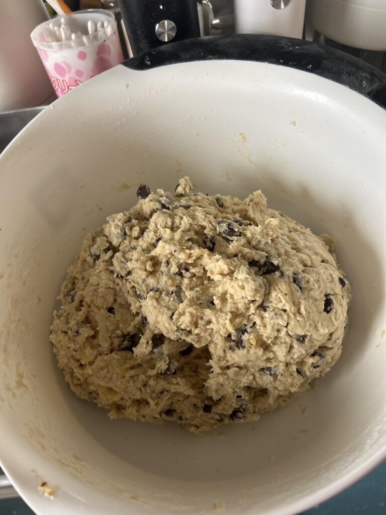 バナナをたくさんいただいたので、チョコとバナナを混ぜてスコーンを焼いた☺️美味しいと喜んでくれた!また作って〜と言われてニコニコの笑顔が可愛かった☺️