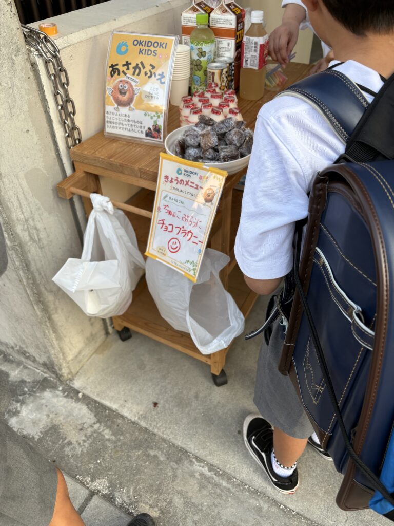 今回は新年度、初のあさかふぇでした!新年度ということで、そろそろあさかふぇで自己紹介を兼ねてOKIDOKI KIDSのポスターを提示してみようと思い、A5サイズでつくってみました。✨ そして提供したアメリカンの甘いチョコブラウニーは、たくさんの子に食べてもらいたいと思い、2種類準備しました✨朝からオーブンで2回焼いて、バタバタしながら子どもたちを連れて、あさカフェへ〜!今日の一番乗りの子は、7時20分!そして、86個あった小さく切ったチョコブラウニーも7時50分には売り切れてました😊感謝です!来週は何を持っていこうかなあ〜🎶みんなの顔をみて、学校へ見送る最高な月曜日です🙌
